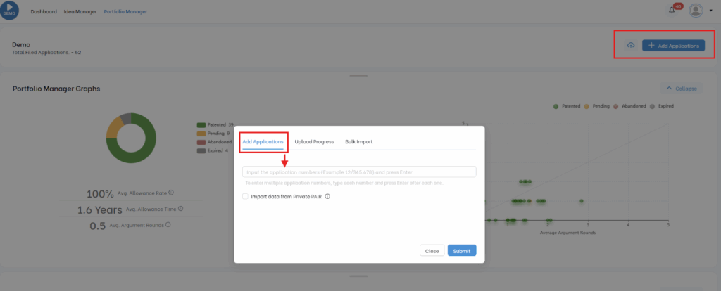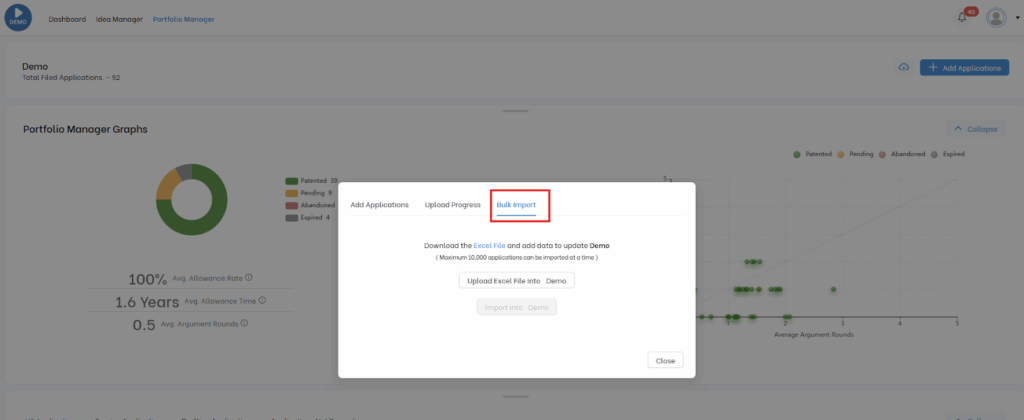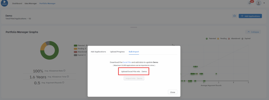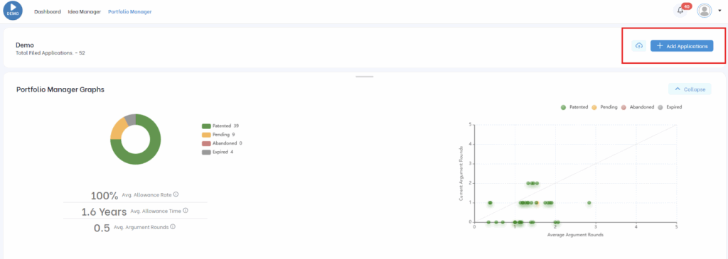 Step 1: First, select the portfolio where the foreign applications should be added. Then, from the navigation bar, click on Portfolio Manager.