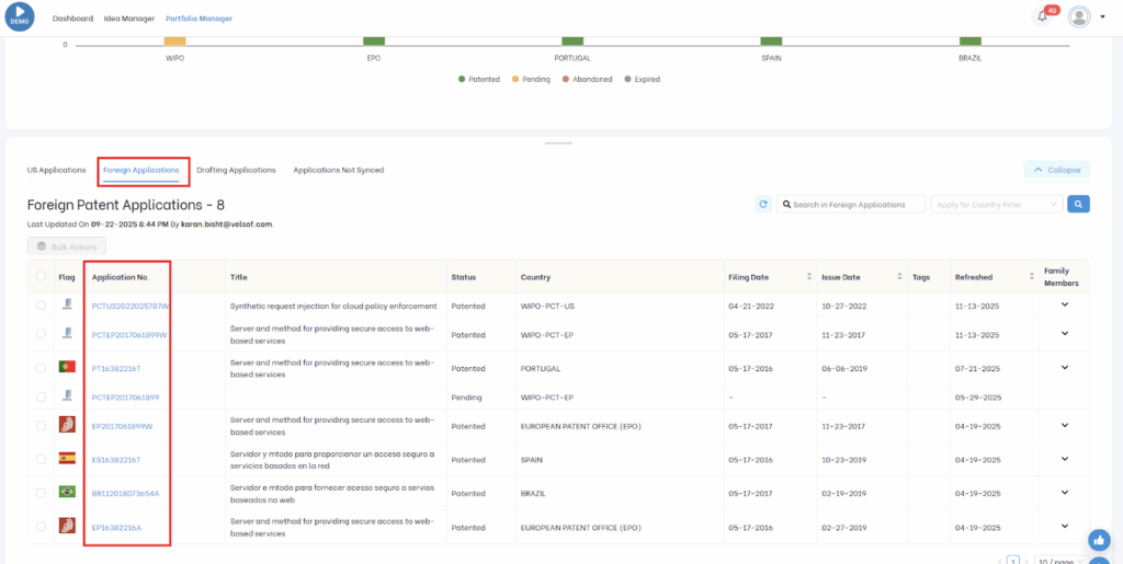 - Foreign applications will appear under the “Foreign Applications” tab in your Portfolio Manager