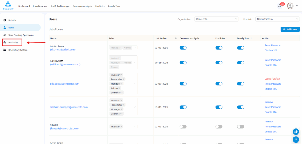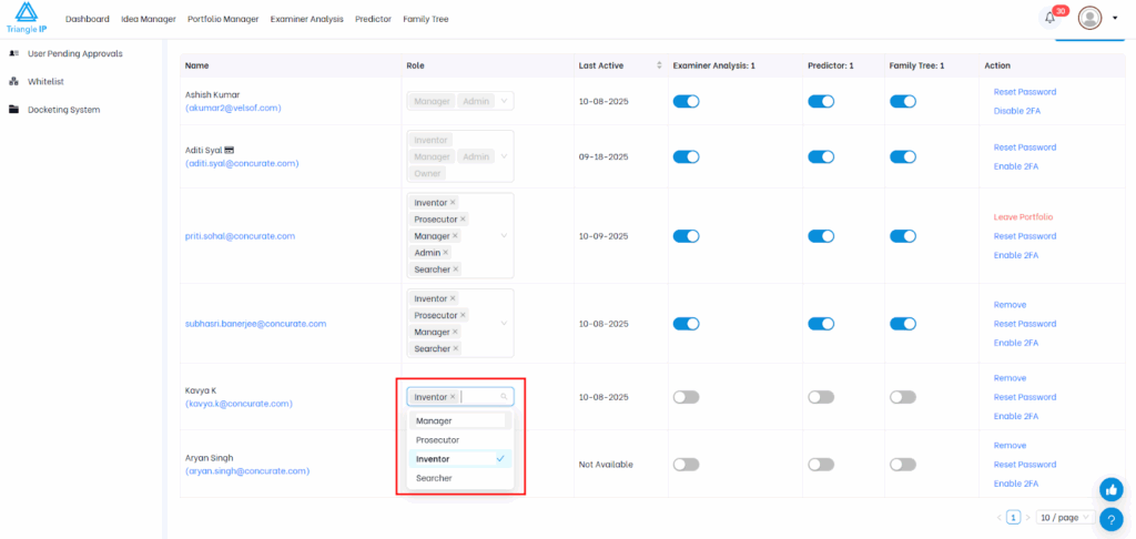 Step 4: Assign appropriate roles (Inventor, Manager, Prosecutor, or Searcher) to approved users.