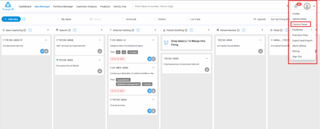 Step 1: Go to your profile icon at the top right on the navigation bar and select Control Panel.