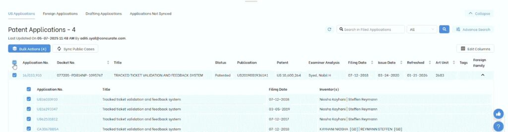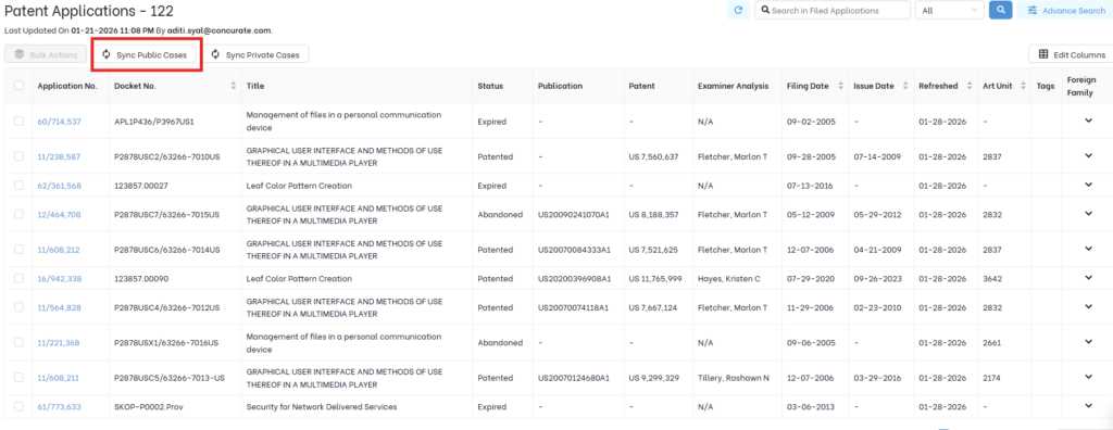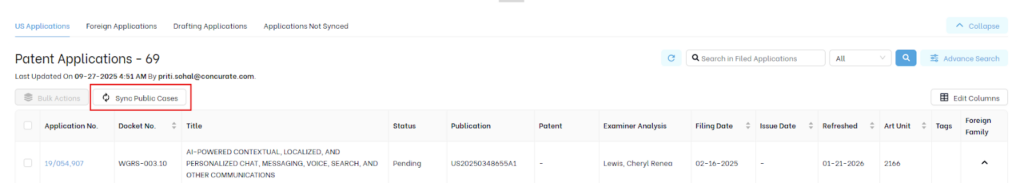 This sync ensures that the application’s status and prosecution history in the TIP Tool™ match the official USPTO records and serves as the source of truth for status tracking.