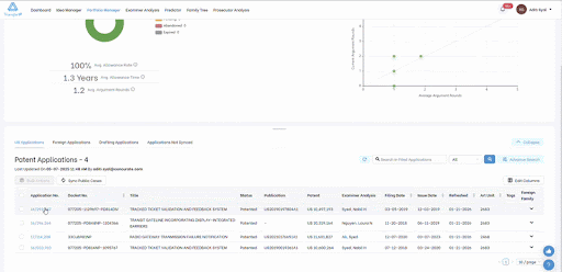 Tracking patent status in the TIP Tool™ is a continuous process that starts once an application is added and continues throughout prosecution. The system relies on USPTO data, which is synced into the platform and reflected at both the application and portfolio levels.